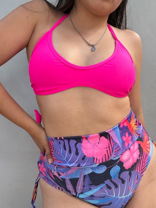 Top con doble forreria y diseño visual que acompaña el busto diseñada para mayor sostén y realce natural. Hecho en lycra premium con protección UV +50, es una opción ideal para quienes buscan soporte extra sin perder estilo. Forrado en el delantero y con tazas desmontables.