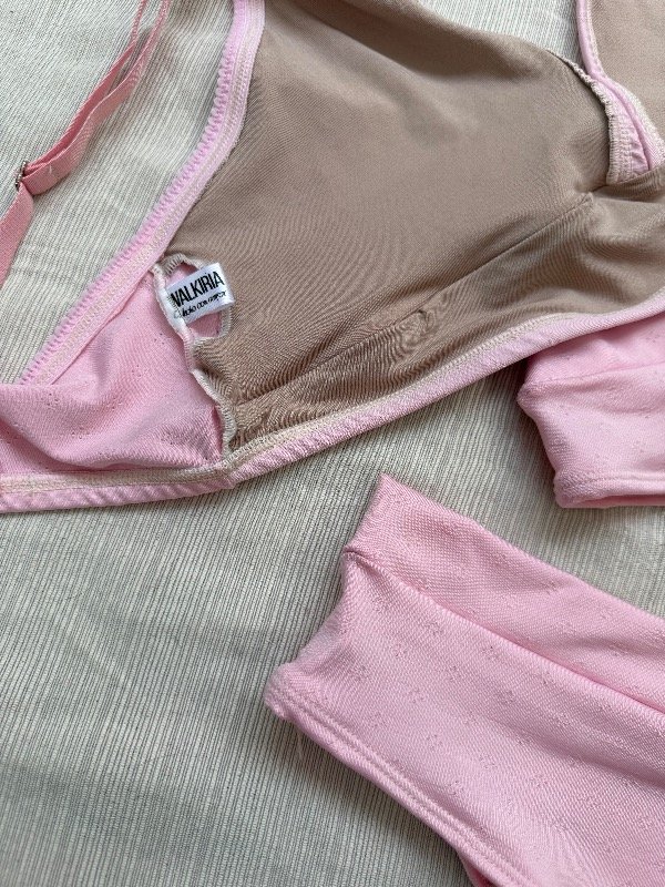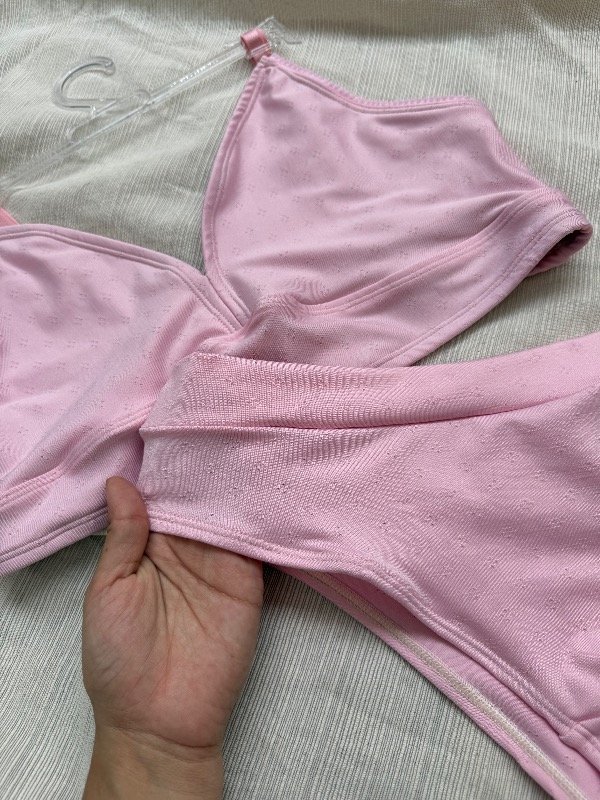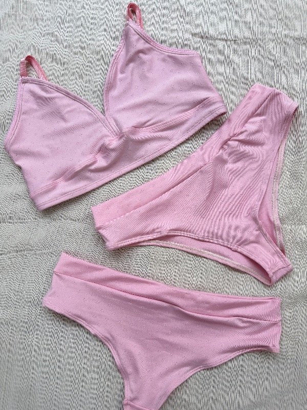 El corpiño incluye bolsillo para taza (no incluida) y se complementa con una bombacha a elección: colaless o vedetina, según tu estilo.