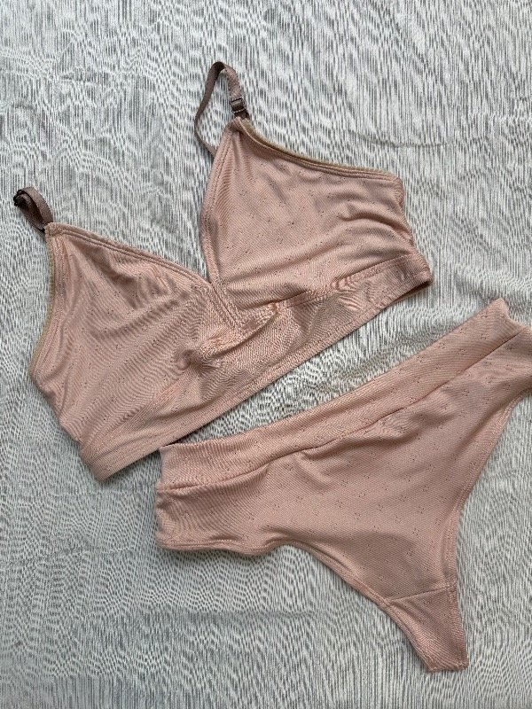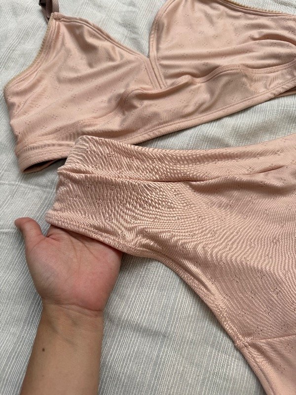 El corpiño incluye bolsillo para taza (no incluida) y se complementa con una bombacha a elección: colaless o vedetina, según tu estilo.