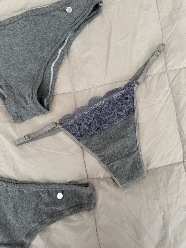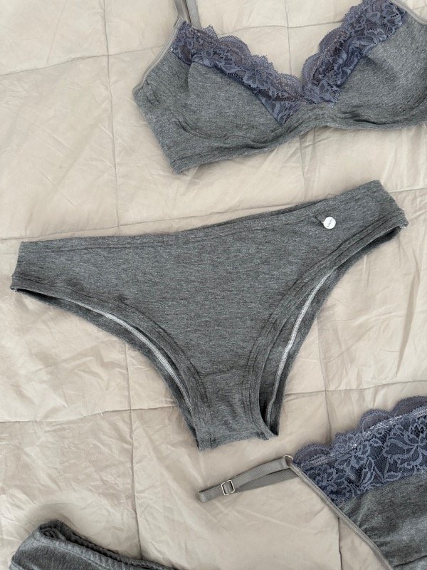 Conjunto en algodón con detalles de encaje. El corpiño está totalmente forrado, con vaina embutida para mayor sostén y detalles de encaje en las tazas. Las bombachas son tiro alto y podés elegir la versión que prefieras: vedetina, colaless o colaless regulable. Desde el talle 3 el corpiño tiene breteles más anchos para mejor soporte.