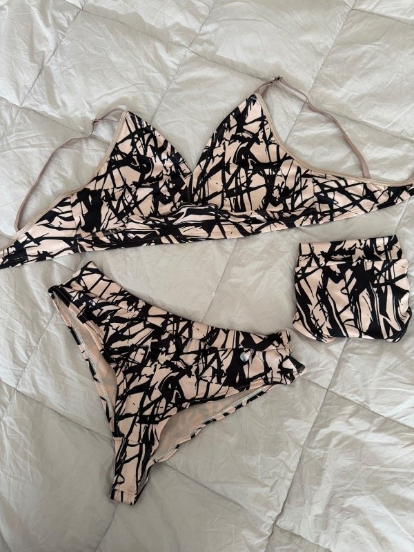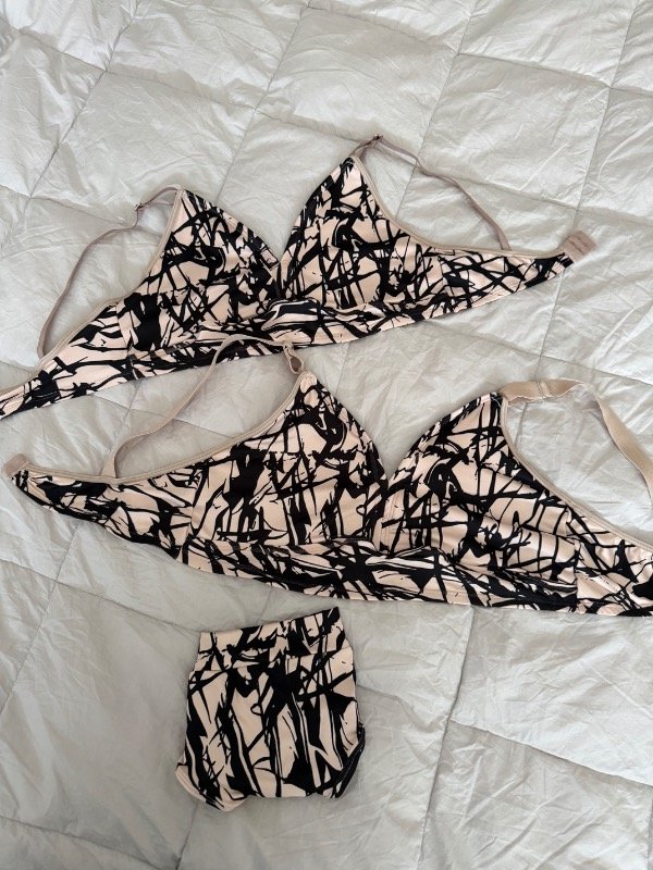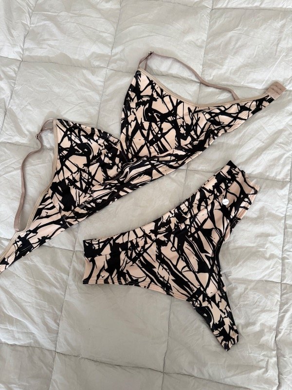 El corpiño incluye bolsillo para taza (no incluida) y se complementa con una bombacha a elección: colaless o vedetina, según tu estilo.